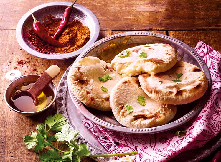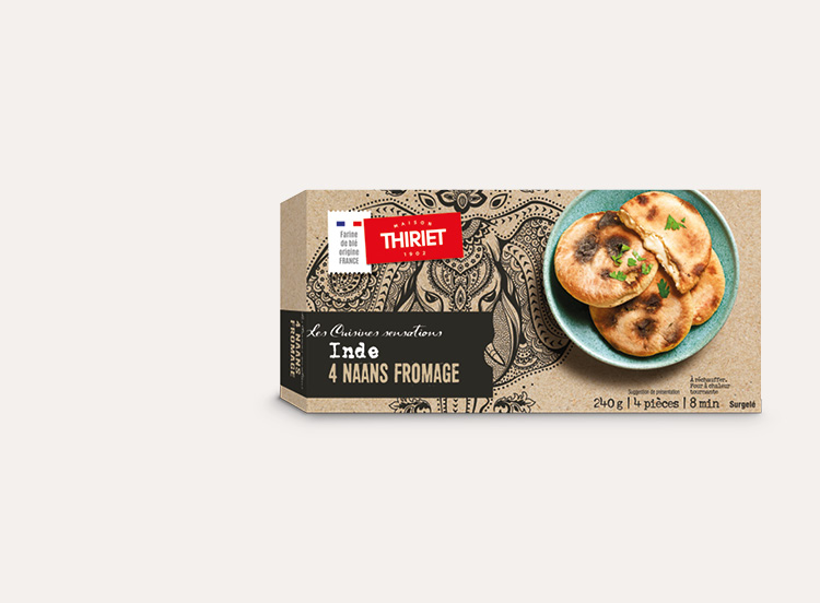 Préchauffez votre four à 180°C (Th 6). Retirez le film plastique et déposez les naans encore surgelés sur une plaque recouverte d’un papier cuisson.