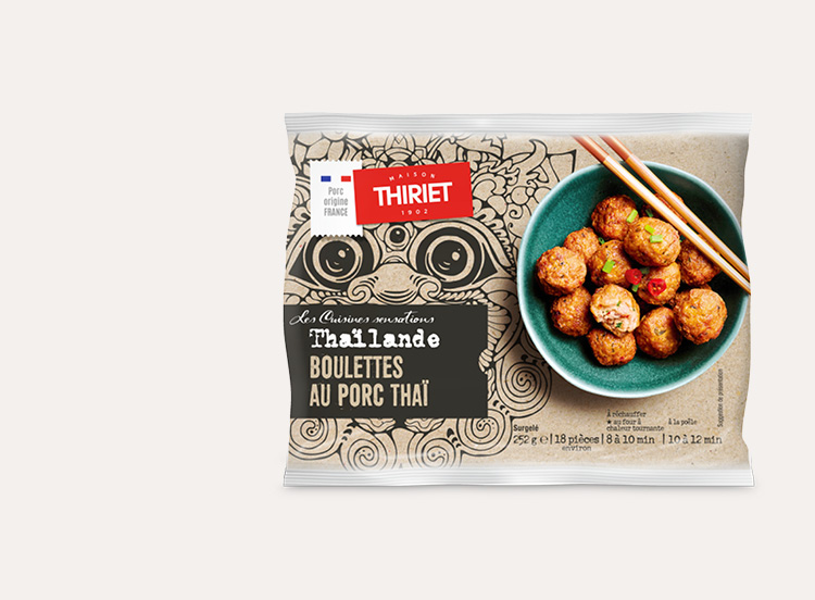 Évasion garantie avec nos boulettes de porc à la thaï ! Préparées avec du porc origine France, ces boulettes savoureuses sont délicatement relevées d’épices pour un juste équilibre entre douceur, fraîcheur et caractère.