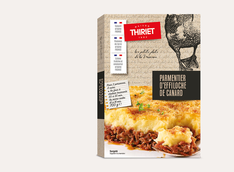 Canard origine FRANCE Pommes de terre origine FRANCE Crème fraîche et emmental origine FRANCE