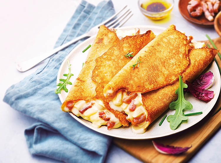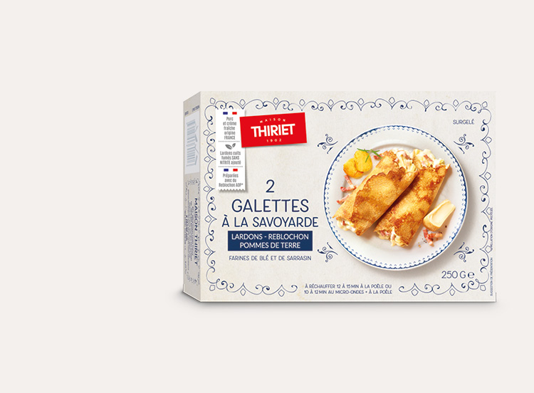 Porc etcrème fraîcheorigineFRANCE Préparées avec du Reblochon AOP * Lardons cuitsfumés SANSNITRITE ajouté