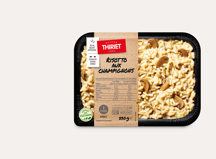 Dénomination de vente : Produit surgelé. Risotto aux champignons de paris